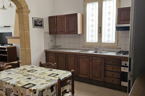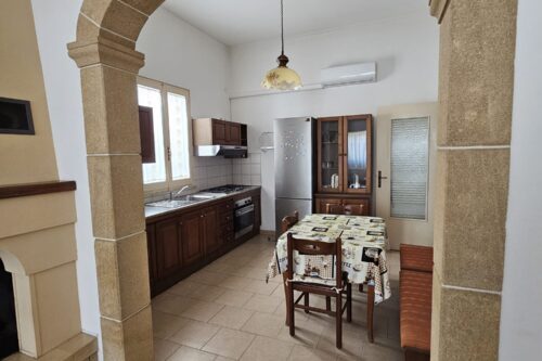 Il fabbricato è costituito da due unità abitative ed è composto da un piano terra con ingresso, soggiorno con camino, cucina abitabile, due camere da letto, bagno, disimpegno, un ulteriore vano adibito a cucinino, porticato retrostante e garage.