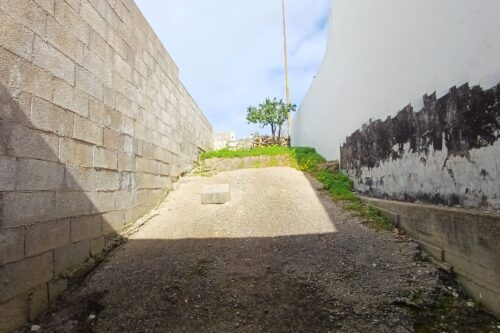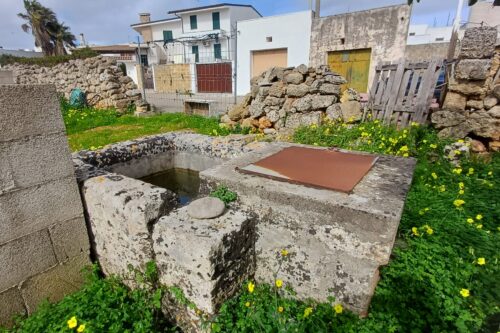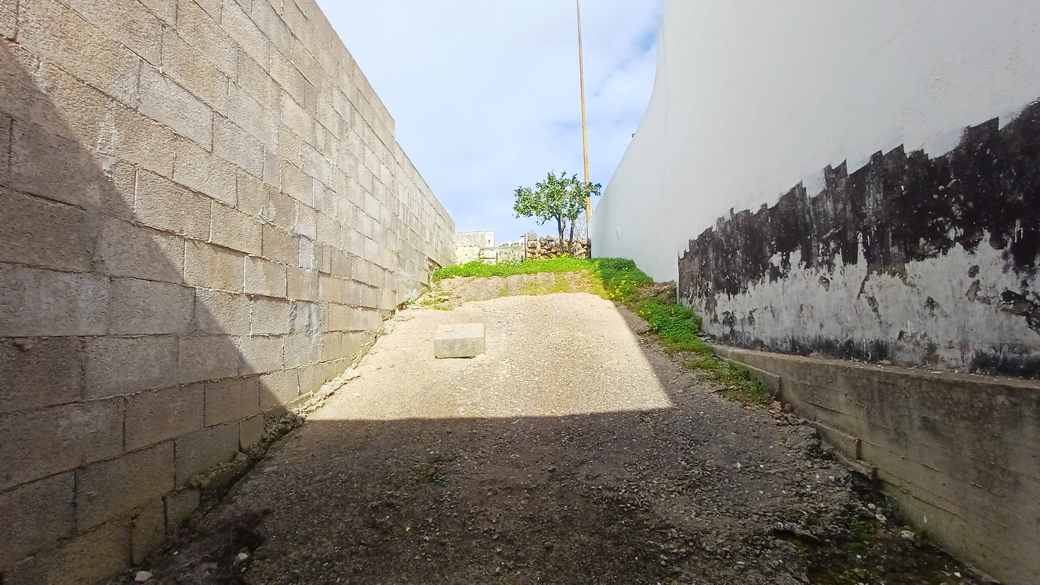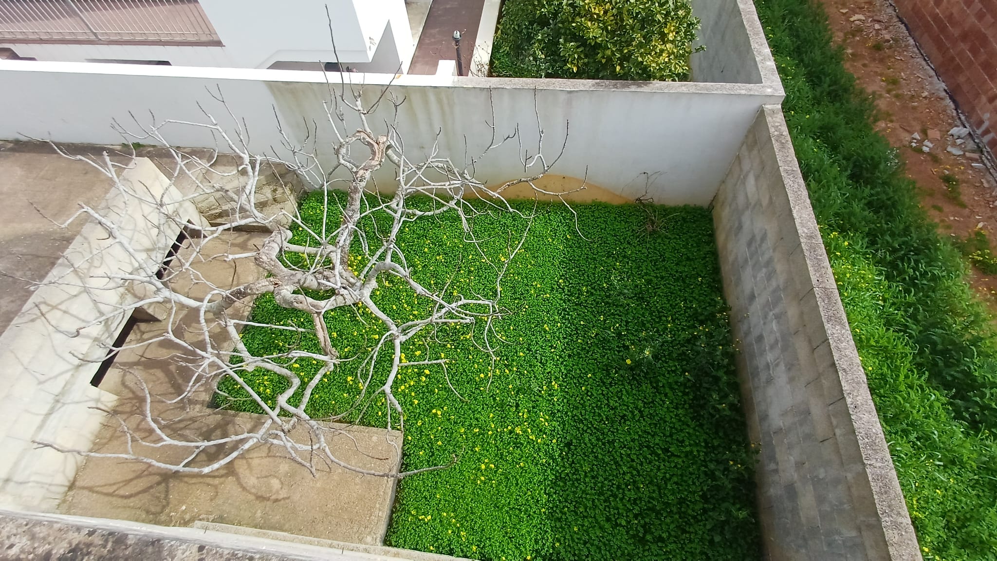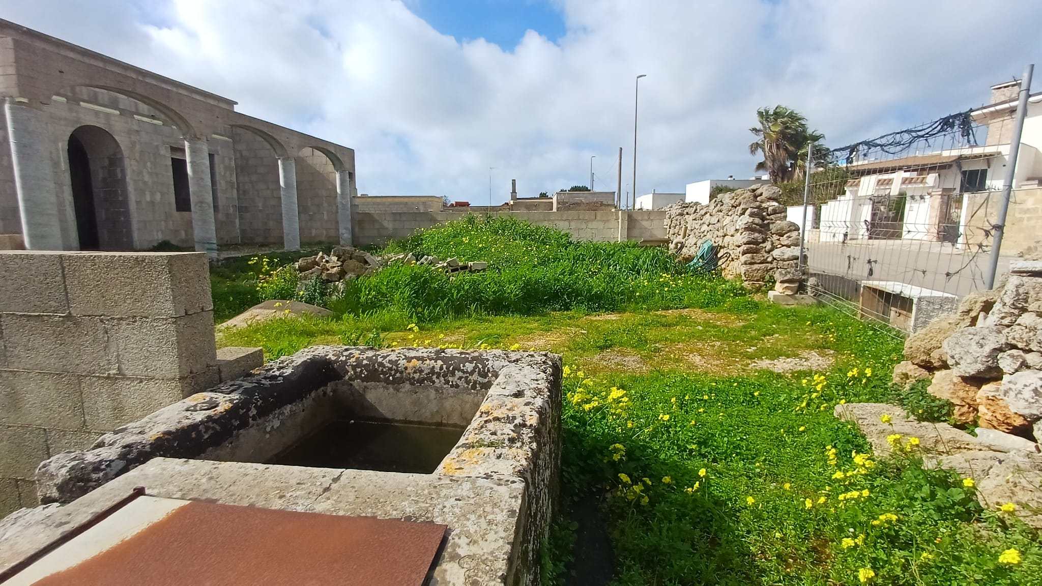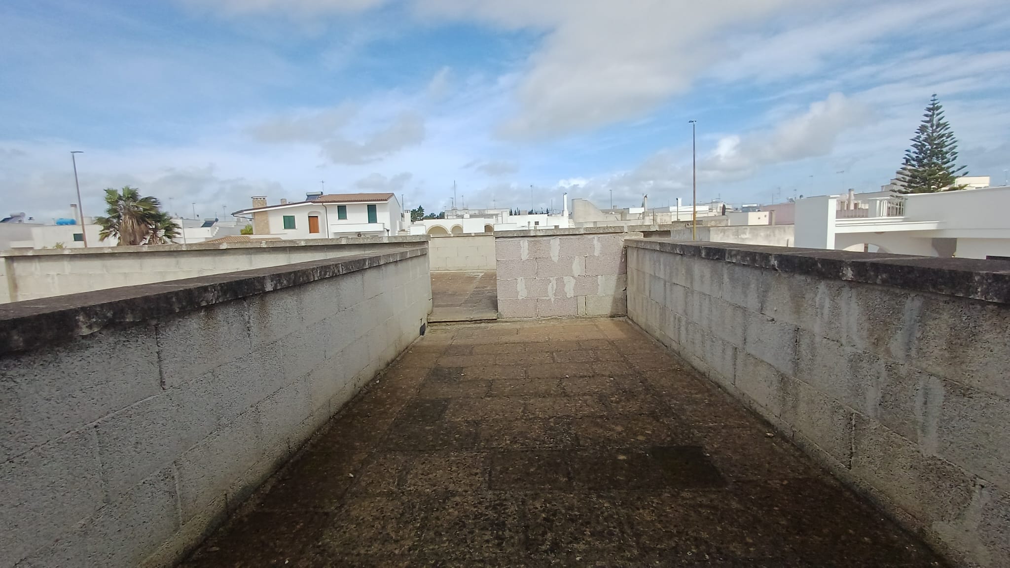 Scala di accesso al lastricato solare, cortile laterale ed ampio giardino con cisterna interamente recintato.