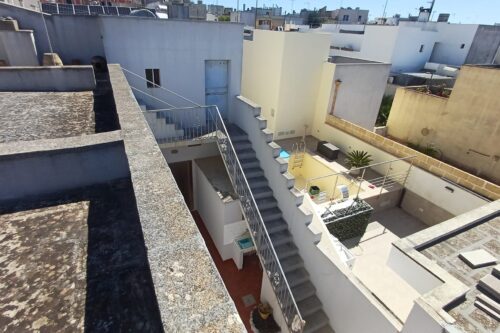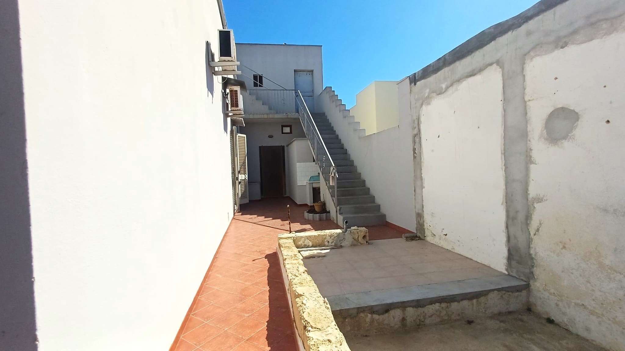 Ampio cortile di pertinenza con cisterna e scala che consente l’accesso ad un vano deposito al piano primo ed al lastricato solare di proprietà esclusiva.