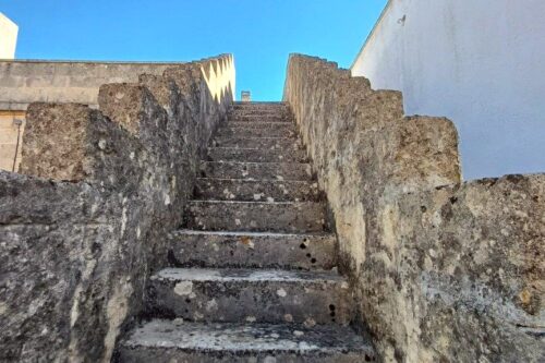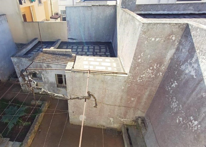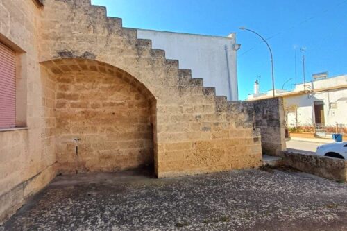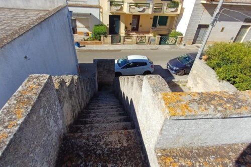 Cortile antistante e retrostante con posto auto e con scala esterna che consente l’accesso al lastricato solare e ad ulteriori due vani al piano primo.