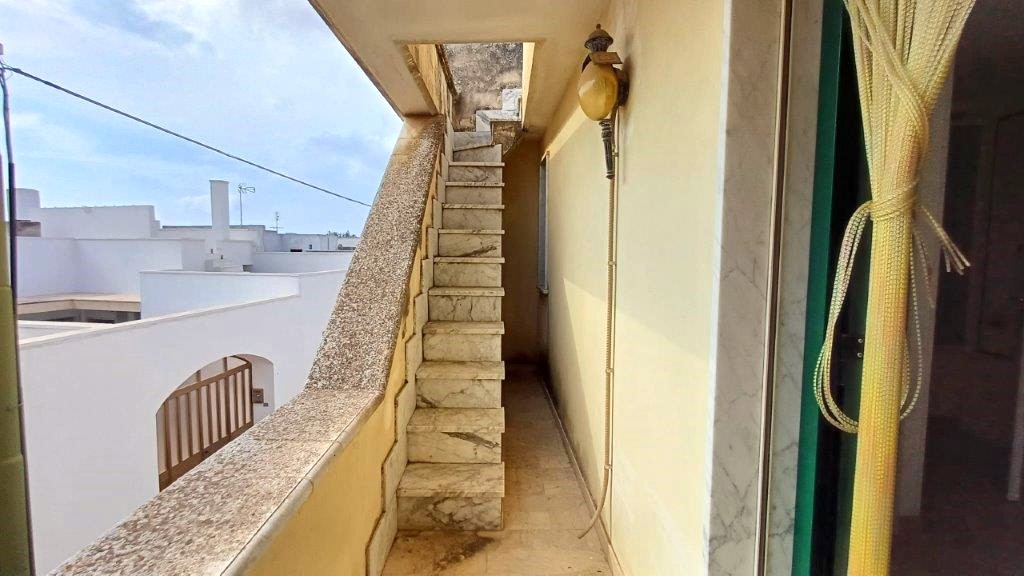 Salignano, (frazione di Castrignano del Capo, a pochi passi da Piazza Sant’Andrea, fabbricato su due livelli composto al piano terra da un ampio vano adibito a soggiorno con angolo cottura ed un ripostiglio. Vano scala che consente l’accesso al piano primo composto da un vano adibito a camera da letto, un bagno con doccia e balcone antistante con scala esterna di accesso al lastricato solare di proprietà esclusiva.
