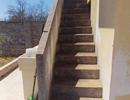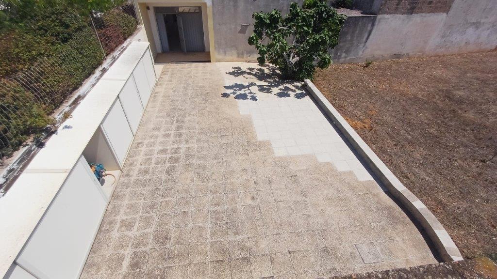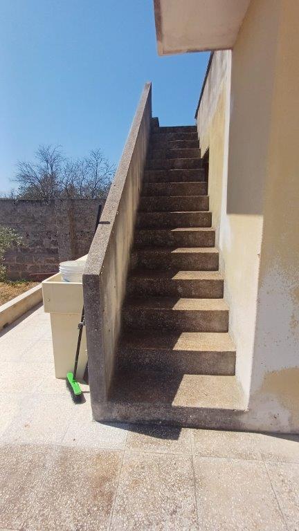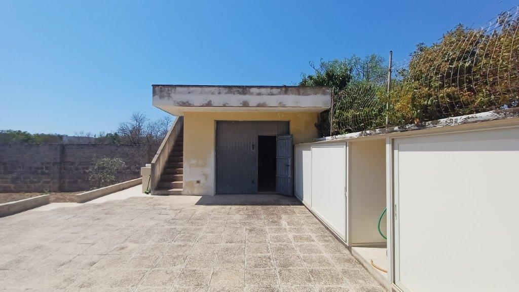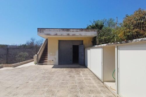 Dal locale garage si accede ad un grande cortile pavimentato sul quale è stato realizzato un locale deposito di circa mq 25 costituito da un unico vano con camino, un bagno e da una scala esterna che consente l’accesso al lastricato solare.