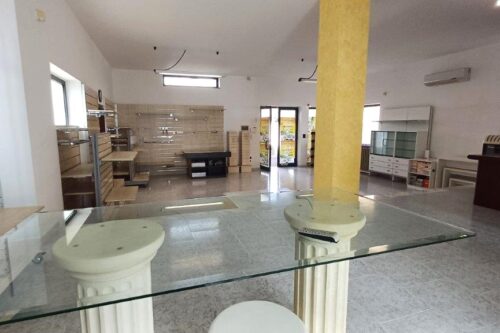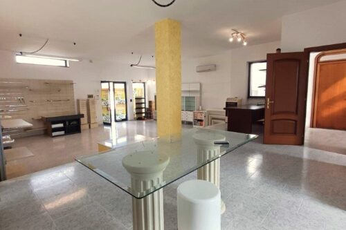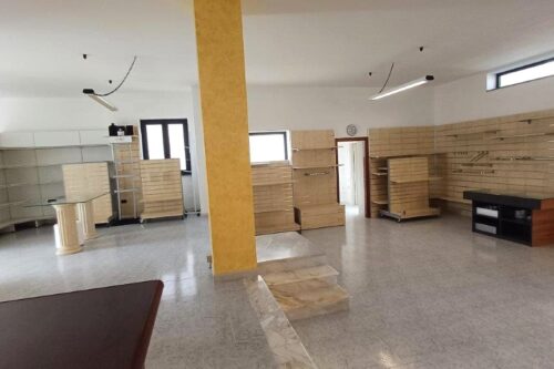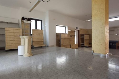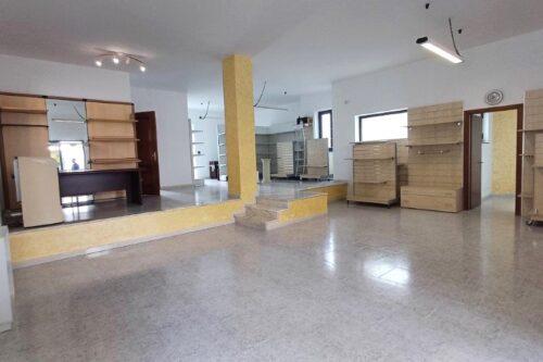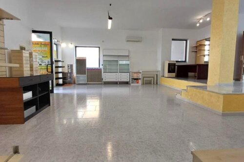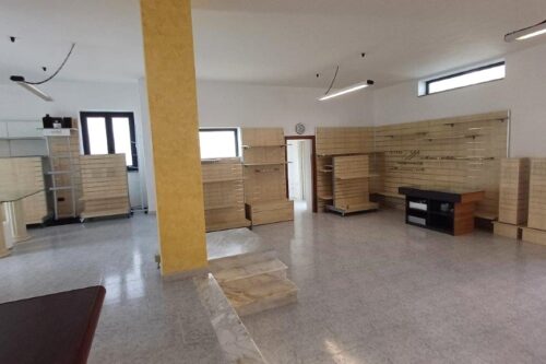 Il fabbricato, realizzato su di un lotto di mq 402 è costituito al piano terra da un ampio locale commerciale ben rifinito di circa mq 127 con ripostiglio, antibagno e bagno, vano scala che consente l’accesso al lastricato solare di proprietà esclusiva e porticato antistante.