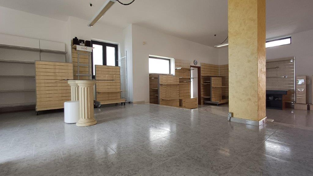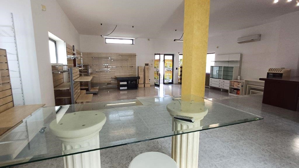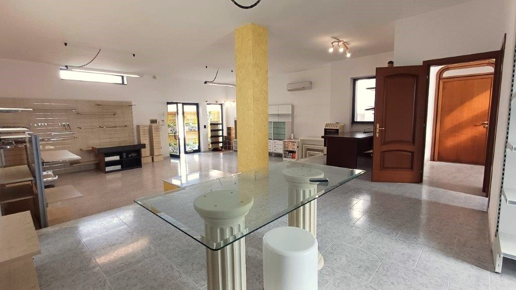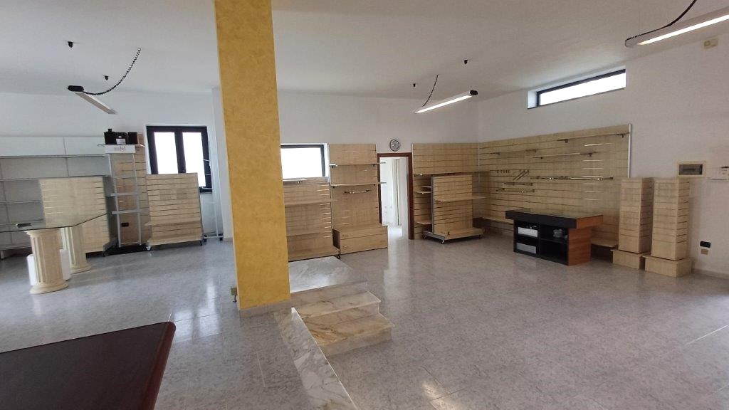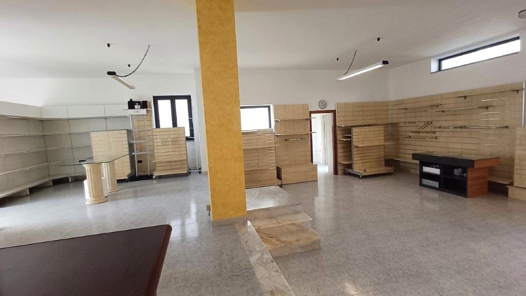 Il fabbricato, realizzato su di un lotto di mq 402 è costituito al piano terra da un ampio locale commerciale ben rifinito di circa mq 127 con ripostiglio, antibagno e bagno, vano scala che consente l’accesso al lastricato solare di proprietà esclusiva e porticato antistante.
