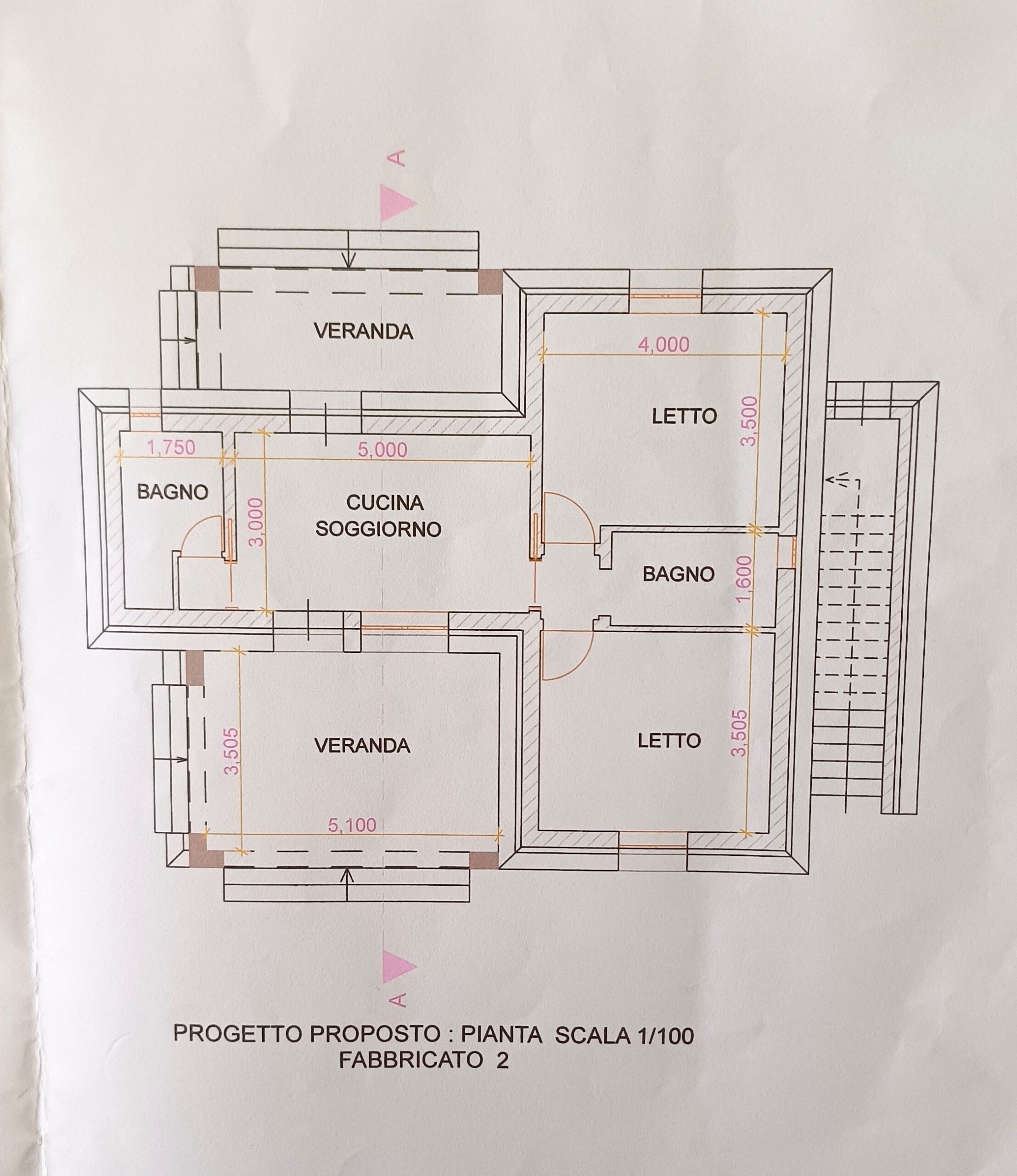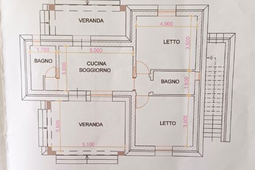 Il progetto prevede per entrambe le ville un ingresso – soggiorno con angolo cottura, due camere da letto, due bagni, veranda antistante e retrostante ed una scala esterna che consente l’accesso al lastricato solare.