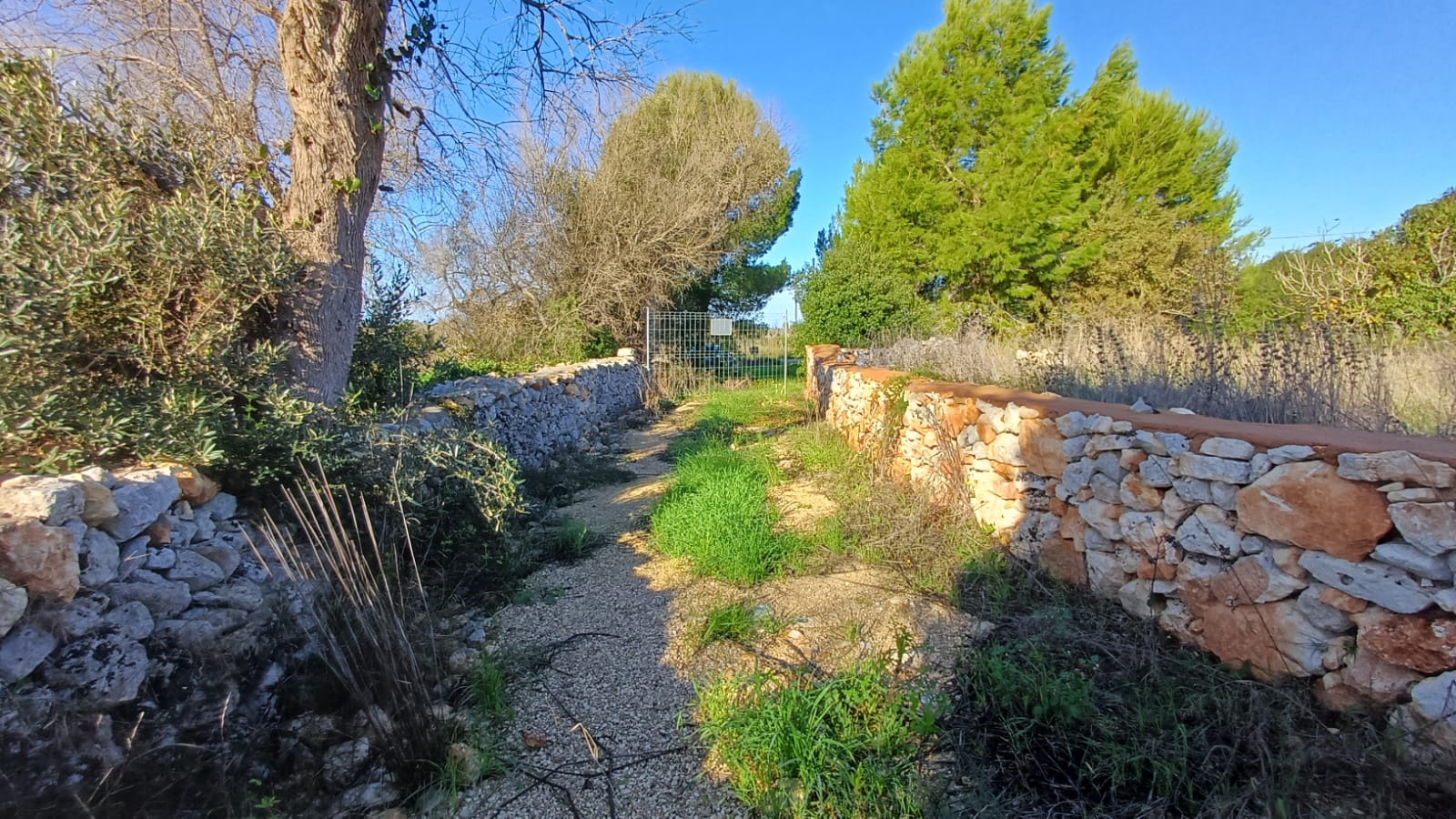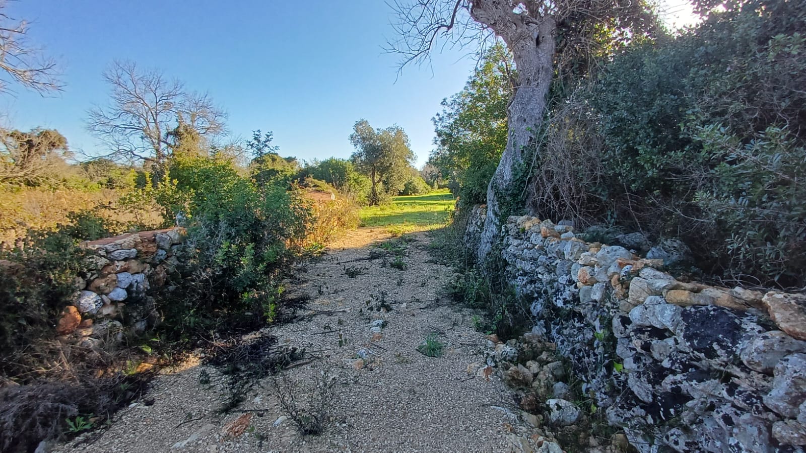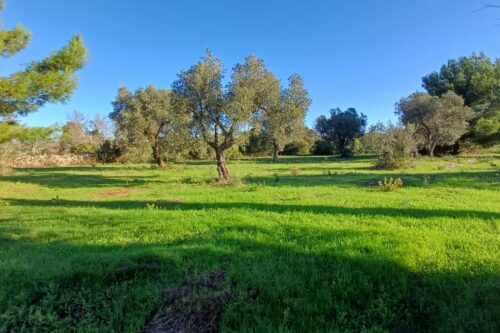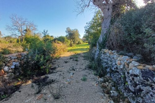 Il terreno, con diversi alberi di ulivo e vegetazione mediterranea è interamente recintato con muri in pietrame a secco ed è accessibile mediante uno stradone sterrato di proprietà esclusiva.