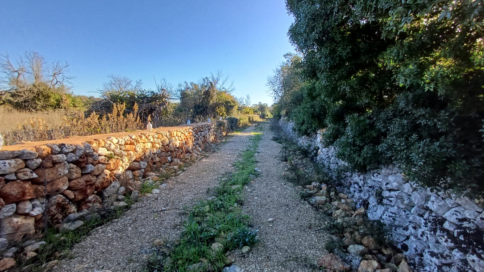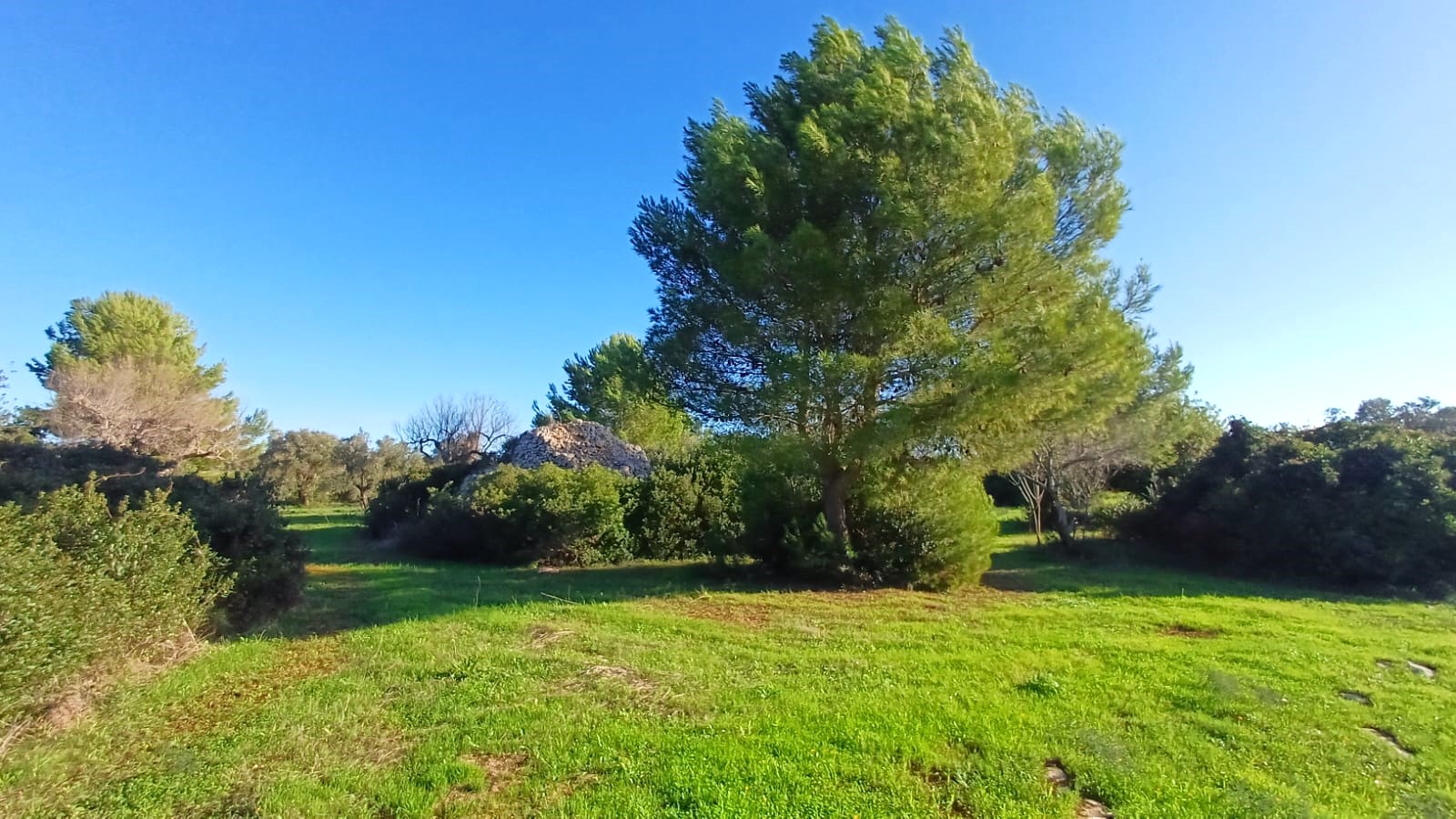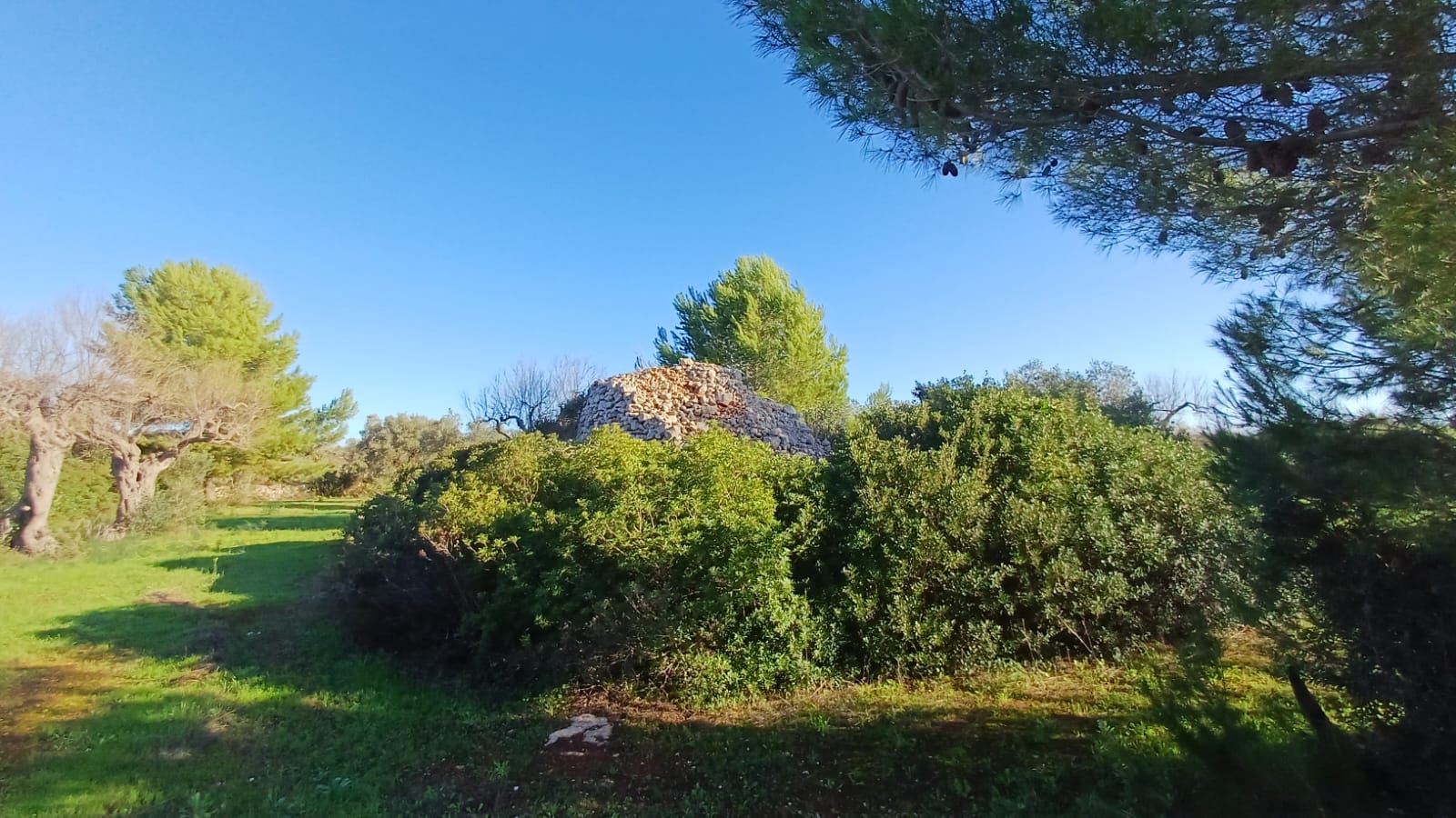 Il terreno, con diversi alberi di ulivo e vegetazione mediterranea è interamente recintato con muri in pietrame a secco ed è accessibile mediante uno stradone sterrato di proprietà esclusiva.