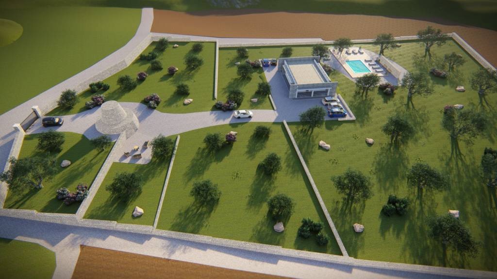 Grazie alla superficie ampia e alla morfologia del terreno, è possibile distribuire spazi esterni, zone verdi, aree relax e garantire privacy e comfort. Il contesto agricolo circostante dona un’atmosfera rurale tipica del Salento, con uliveti e vegetazione mediterranea, pur restando vicino alle località marittime.