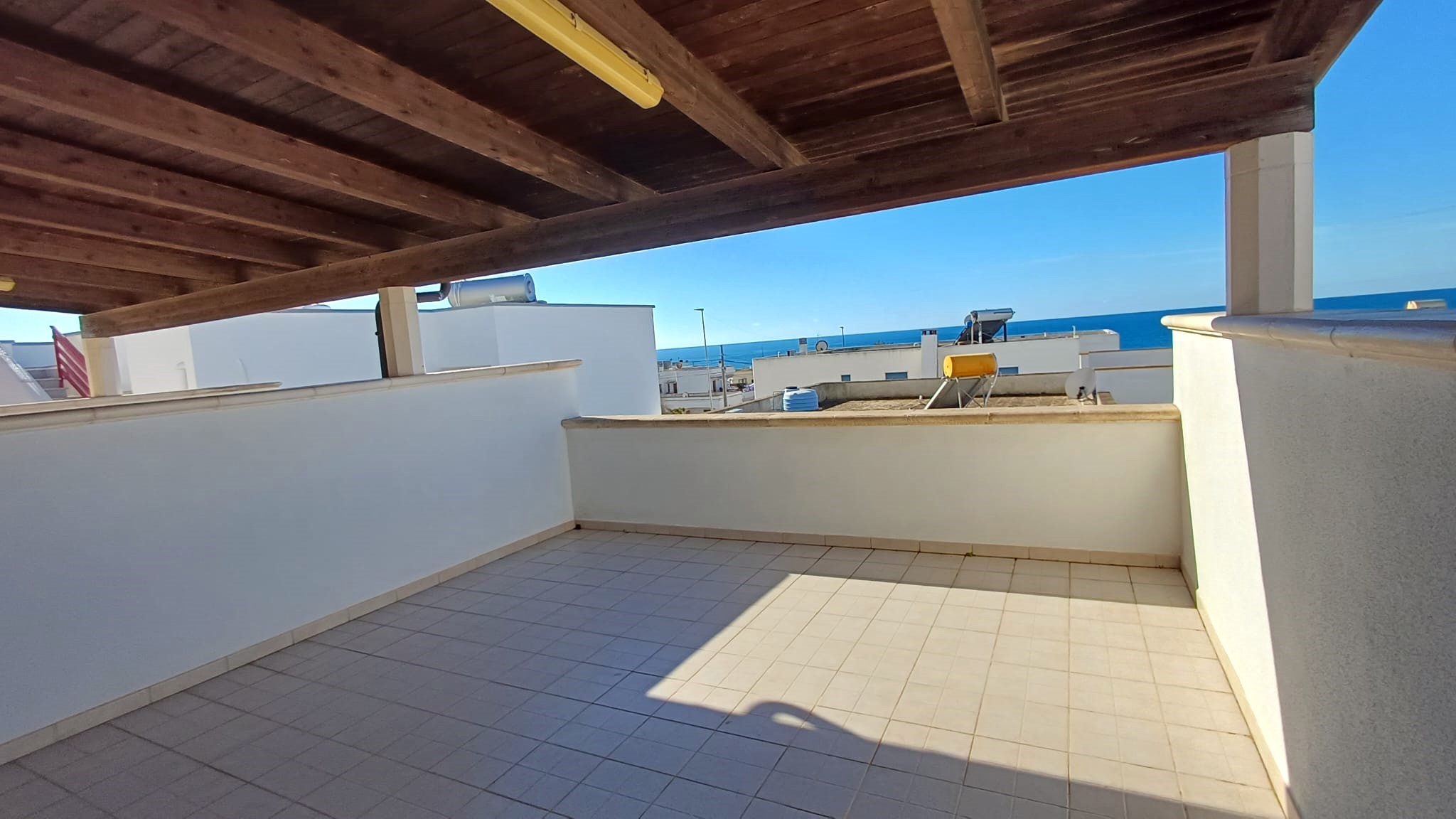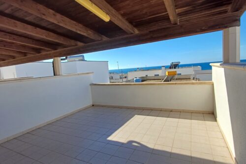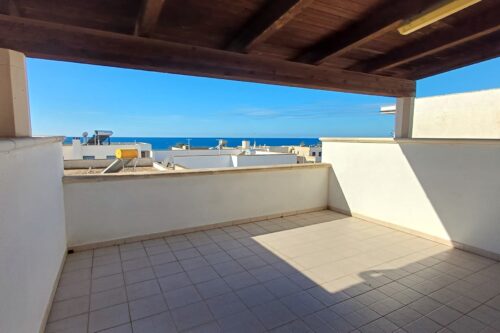 Mediante una scala interna che consente l’accesso al piano primo si accede ad un ulteriore camera da letto, ad un bagno ed a due ampi terrazzi a livello di cui uno con grande porticato e con vista mare ideale per soggiornare all’aperto.